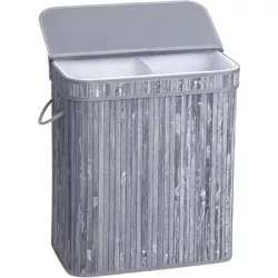 RYL-100L-СИВ | Сив кош за пране | Бамбуков контейнер за играчки | Дървена кошница за дрехи | Кош за пране за баня с две отделения