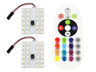 RGB LED panel sæt | 2 LED-paneler 24 SMD 5050 RGB | Farve fjernbetjening | C5W og W5W adaptere