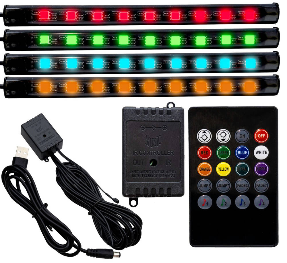 RGB LED лента за автомобилен салон с USB захранване и дистанционно управление