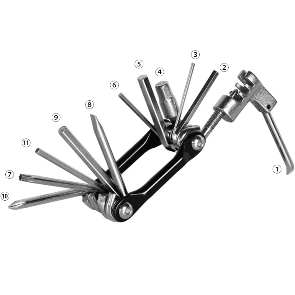 Praktický a spolehlivý multitool 11 v 1 je ideálním společníkem na každou cyklistickou výpravu. Spojuje všechny základní funkce potřebné pro rychlou opravu v terénu. Je lehký, kompaktní a velmi odolný. Díky pevné konstrukci z nerezové oceli s chromovaným povrchem si nářadí zachová plnou funkčnost i při intenzivním používání po mnoho let.