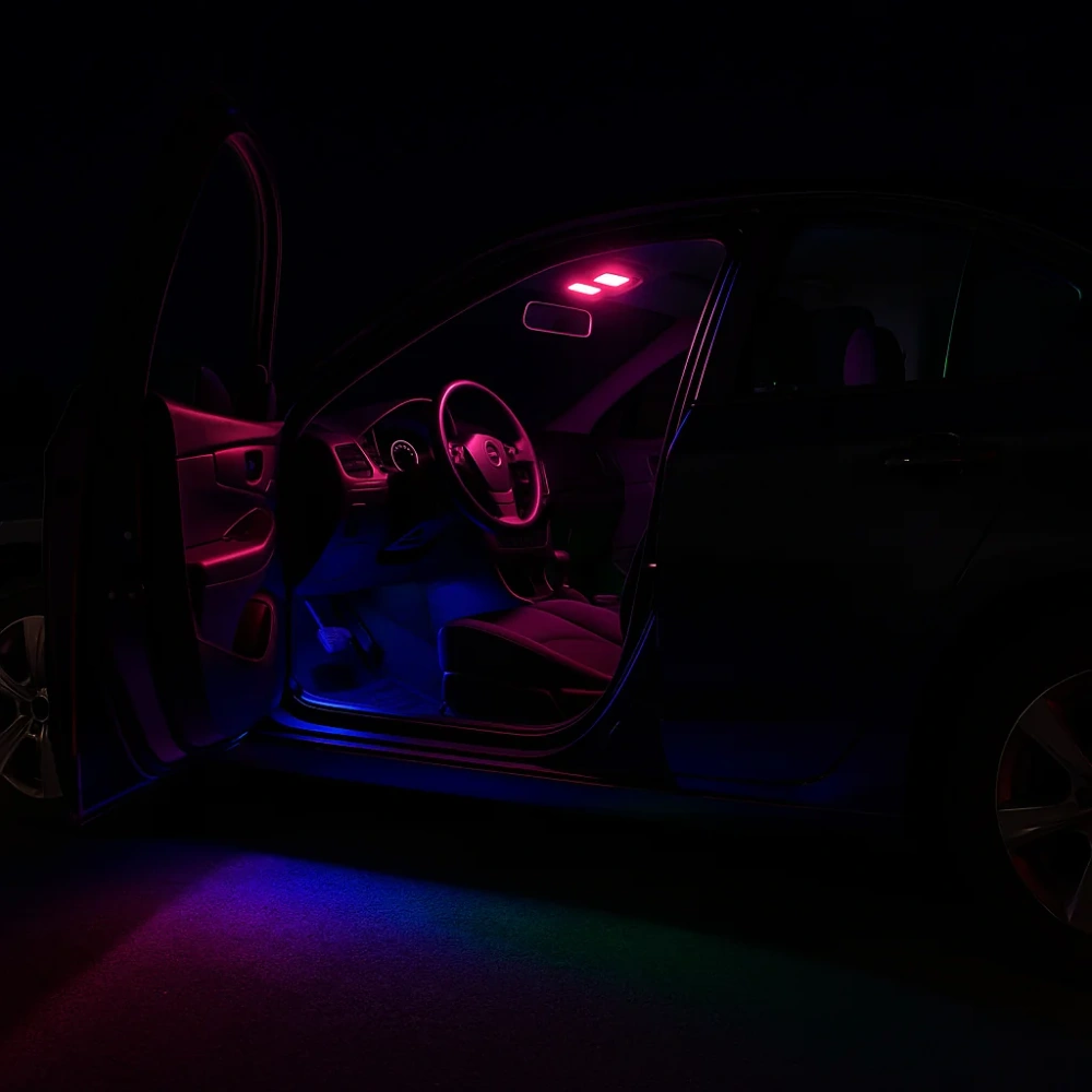 RGB LED panel sæt | 2 LED-paneler 24 SMD 5050 RGB | Farve fjernbetjening | C5W og W5W adaptere