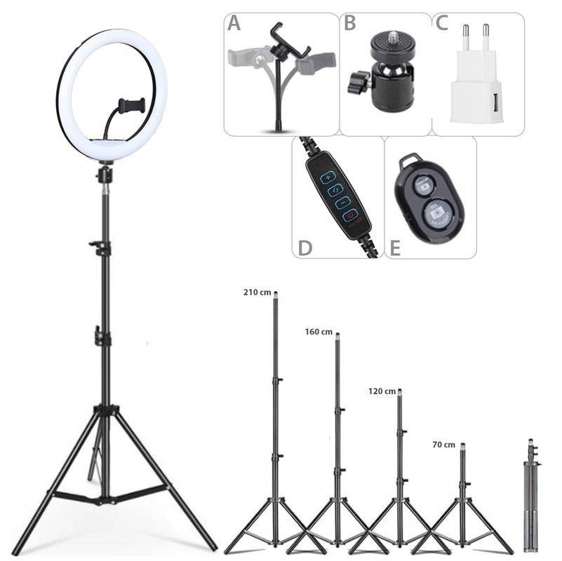 SENY 260T 4i1 | Ringlampe 260 mm | Justerbart stativ 210 cm | CA-004 netoplader | iOS/Android Bluetooth fjernbetjening