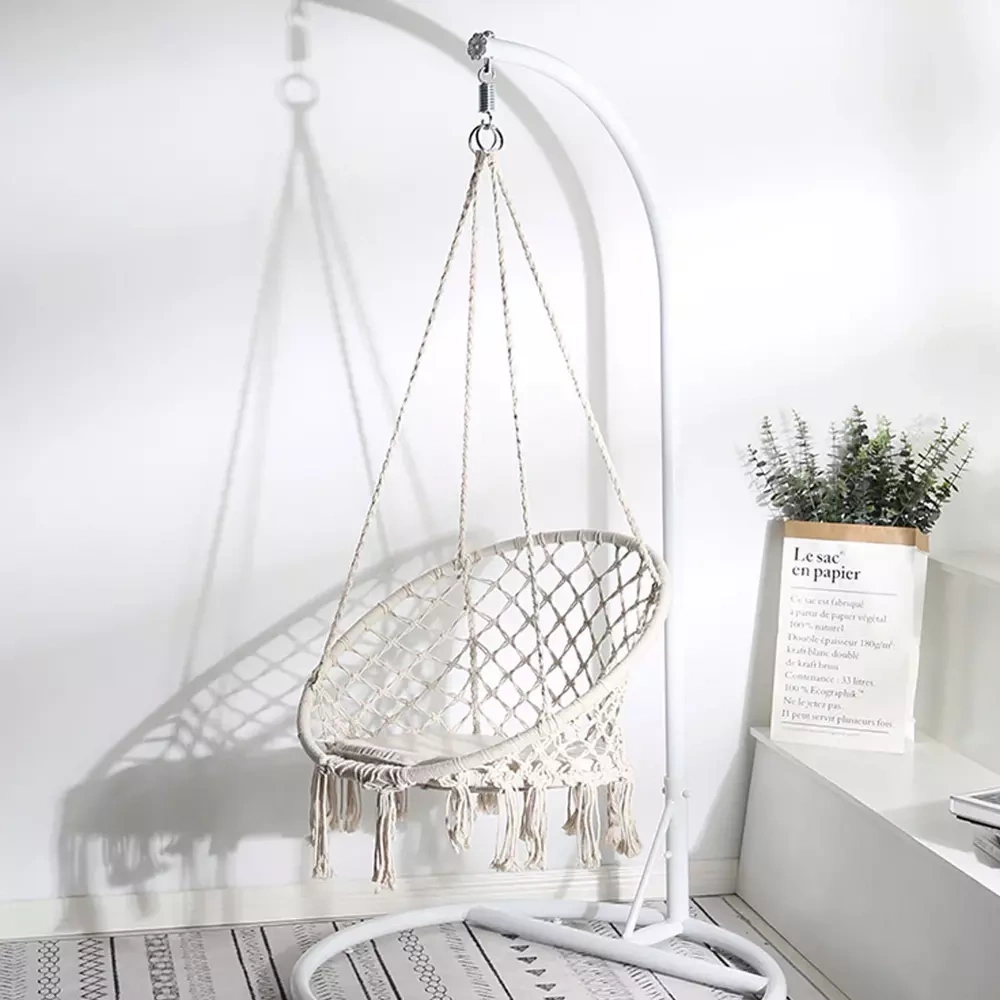 Gyngen vil også perfekt komplementere udseendet af interiøret takket være dens universelle farver, smukke flettede reb og frynser, der minder om en meget moderigtig, boho stil.