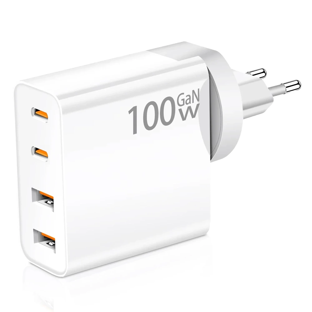 - -Kraftfuld 100W strøm og 4 porte -GaN-teknologi: mindre, lettere, mere effektiv og effektiv end traditionelle opladere. -Universal kompatibilitet: Understøtter PD 3.0, QC 3.0, PPS, SCP, FCP og andre standarder, perfekt til de fleste enheder på markedet.