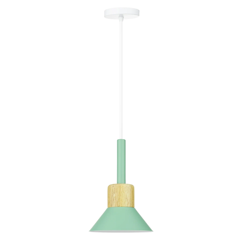 Pendellampe med skærm i grøn og træ | minimalistisk design i skandinavisk stil med E27 fatning | YG-XD002B-G