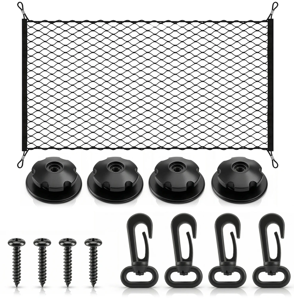 En enkel og effektiv løsning, der øger sikkerheden og hjælper med at holde orden i bagagerummet. Den universelle størrelse, gode elasticitet og holdbare materialer gør nettet praktisk både til daglig brug og på længere ture, hvor det sikrer stabil og nem fastgørelse af dine ting.