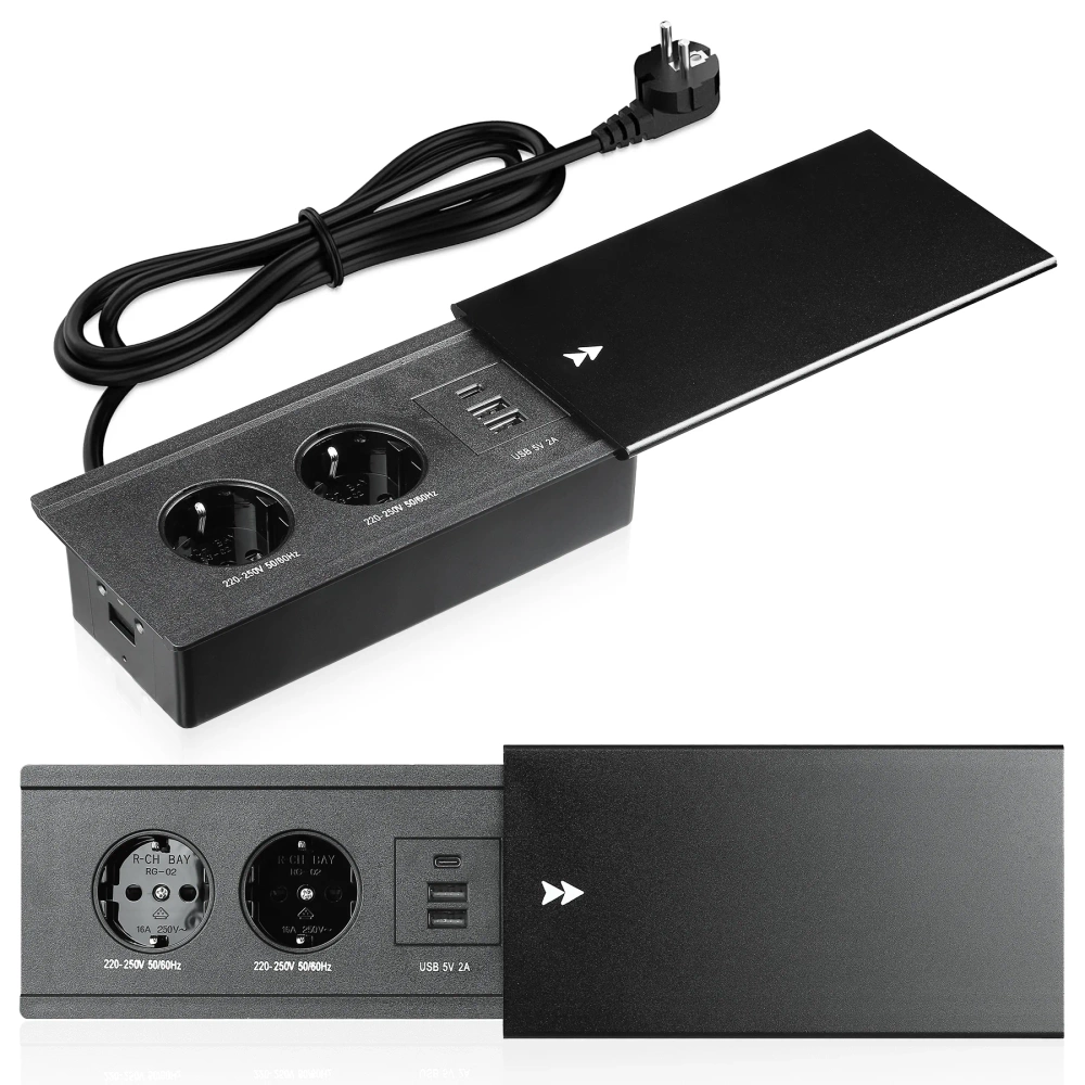 Modern inbouw tafelstopcontact met schuifdeksel is een praktische en elegante oplossing waarmee je werkruimte, keuken of vergaderruimte overzichtelijk blijft.