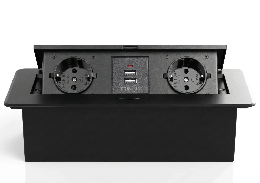 Intended for installation in kitchen countertops, desks, tables . Possible horizontal and vertical installation allows you to easily hide the sockets.