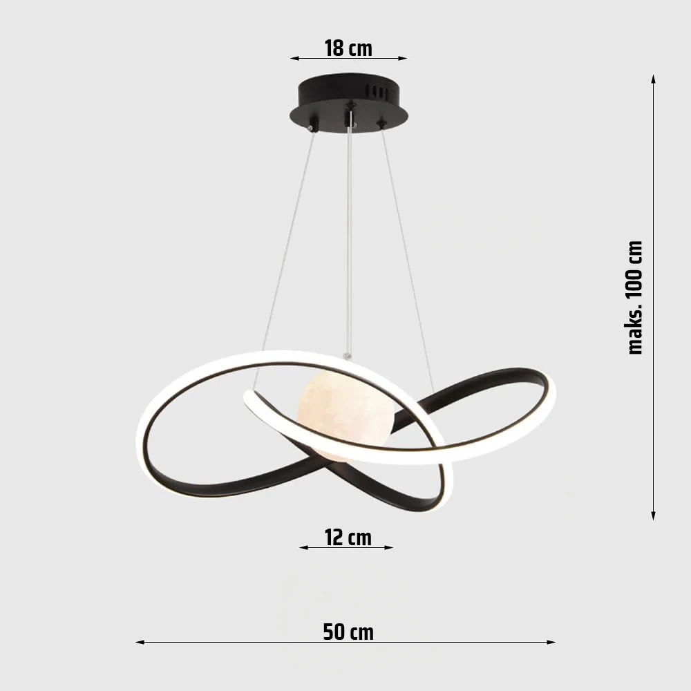 The chandelier offers a wide range of adjustments, allowing you to precisely adjust the height of the lamp's suspension to your needs. The maximum hanging height is 100 cm, which allows the lamp to be perfectly adapted to rooms of different heights. Additionally, the moon ball can be adjusted independently of the lamp, giving you full control over the direction and intensity of light.