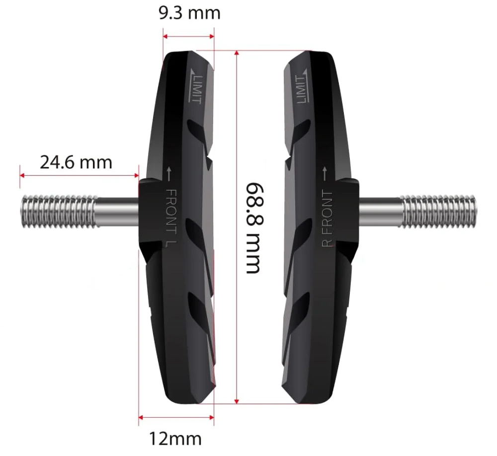 - -Powerful and confident braking: effective performance on dry and wet surfaces. -Water and mud drainage grooves: increase braking efficiency in difficult conditions. -Durable rubber and aluminum compound: ensures long life and noise reduction.