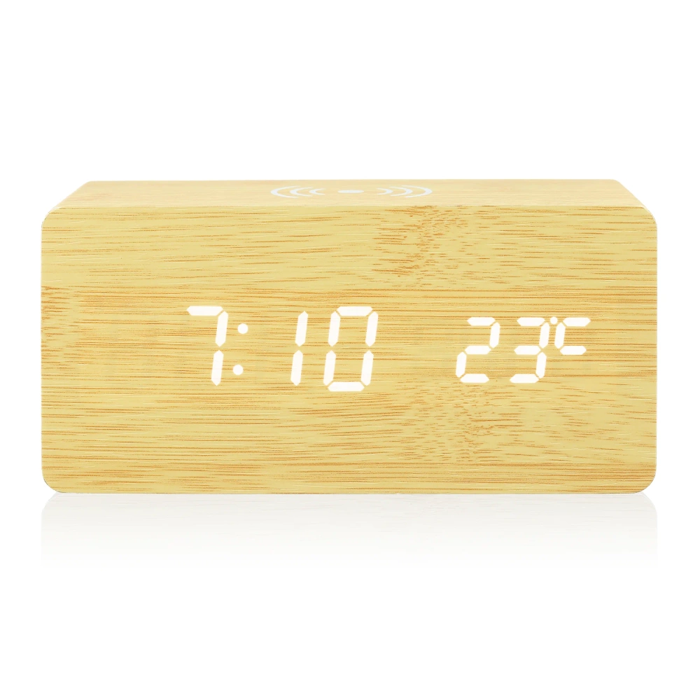 Wooden digital LED clock with 10 W wireless charger | alarm clock with 3 alarms and thermometer | SXM-017