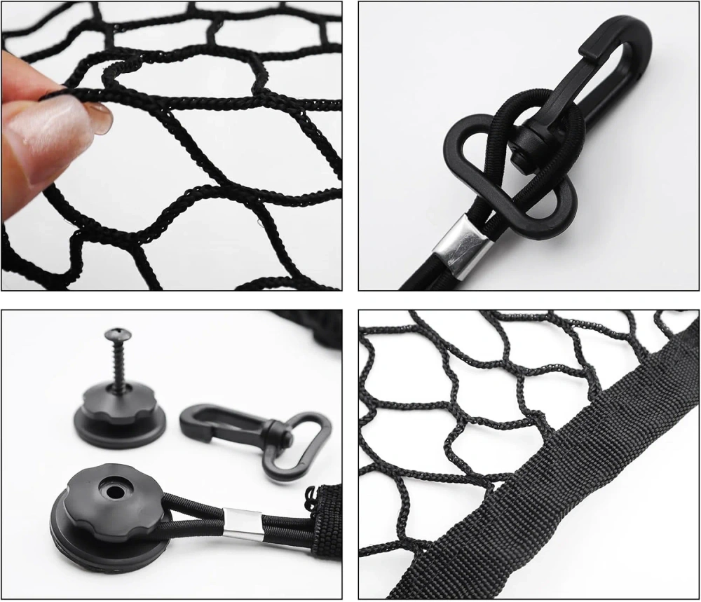 Le filet est fabriqué en nylon et polyester durables et élastiques, résistants à l'étirement et à l'usure. Sa capacité d’extension permet de fixer solidement aussi bien de petits objets que des éléments plus grands ou de forme irrégulière. Son système de montage simple assure une installation rapide, sans besoin d’outils spécialisés.