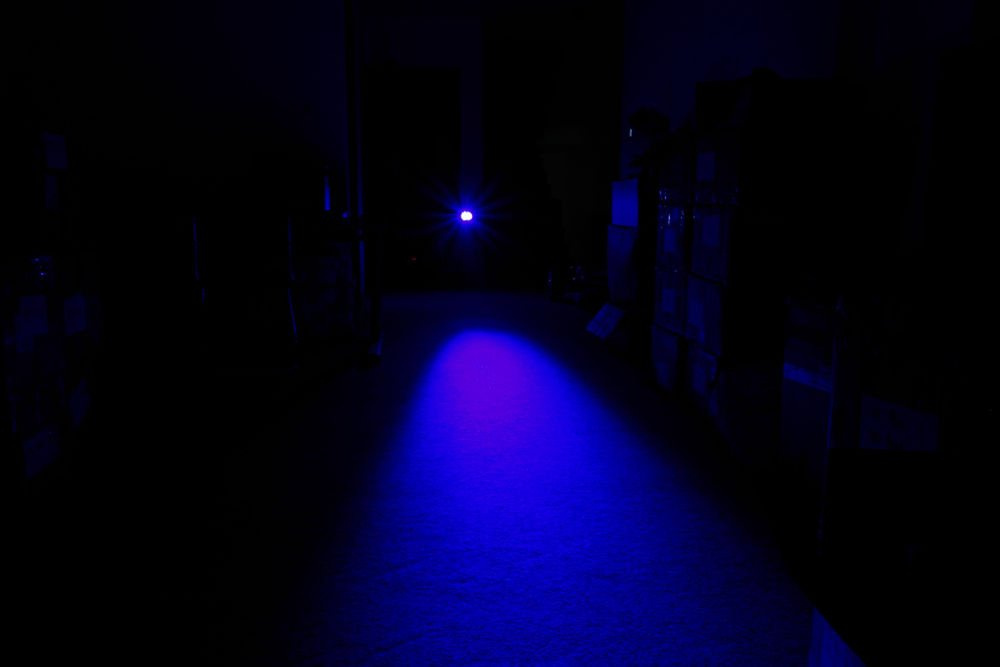 Wenn die Arbeitsleuchte in einem Abstand von 1 Meter zur Wand oder zu einer Fläche positioniert wird, hat der Lichtstrahl einen Durchmesser von ca. 20 cm.