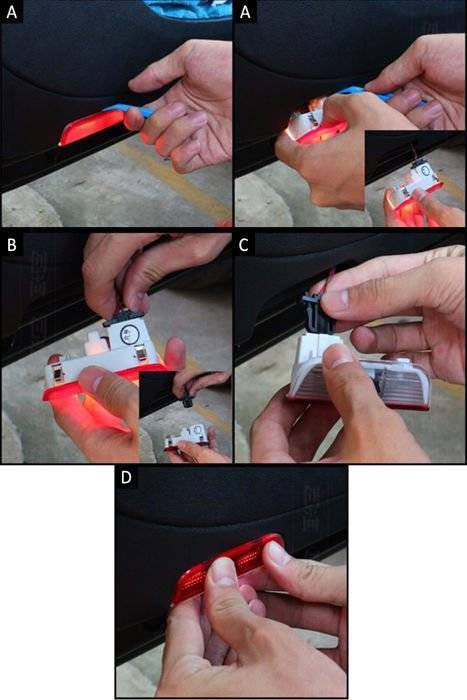 Die Montage der Lampen ist einfach und kann selbst durchgeführt werden. Für den Austausch der LED LOGO-Lampen genügt ein Schlitzschraubendreher oder ein Hebelwerkzeug zum Herausnehmen der Lampe.