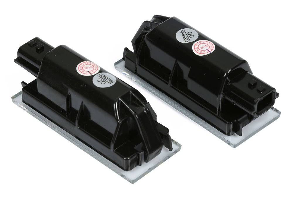 Das Set besteht aus zwei Leuchten zur Beleuchtung des hinteren Nummernschilds im Fahrzeug.