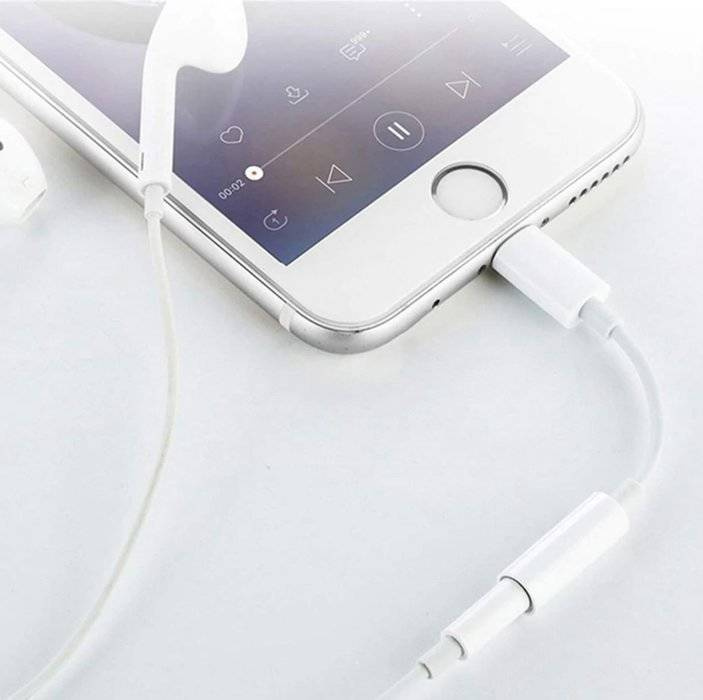 Das Angebot umfasst einen Adapter, der das Musikhören vom iPhone über kabelgebundene Kopfhörer oder Lautsprecher ermöglicht.