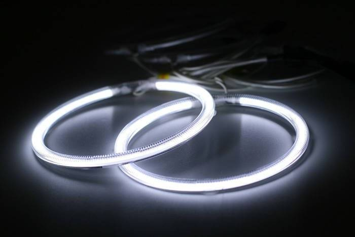 Ringe Sie arbeiten auf Basis der „ CCFL “-Kaltkathoden-Leuchtstofflampentechnologie . Kerze Helles, gleichmäßiges, schneeweißes Licht , das unvergleichlich besser aussieht als Ringe, die mit dem Licht einer normalen Glühbirne beleuchtet werden. CCFL-Ringe leuchten Schwerer als in Serienfahrzeugen.
