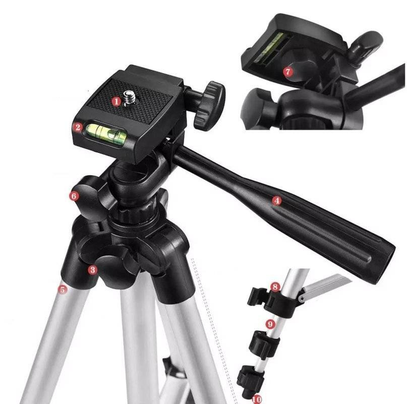 Das Stativ verfügt über teleskopische Beine mit 4-stufiger Einstellung, sodass die Höhe von 35 cm bis 103 cm angepasst werden kann. Dadurch lässt es sich flexibel an verschiedene Bedürfnisse anpassen, sowohl im Innenbereich als auch im Freien.