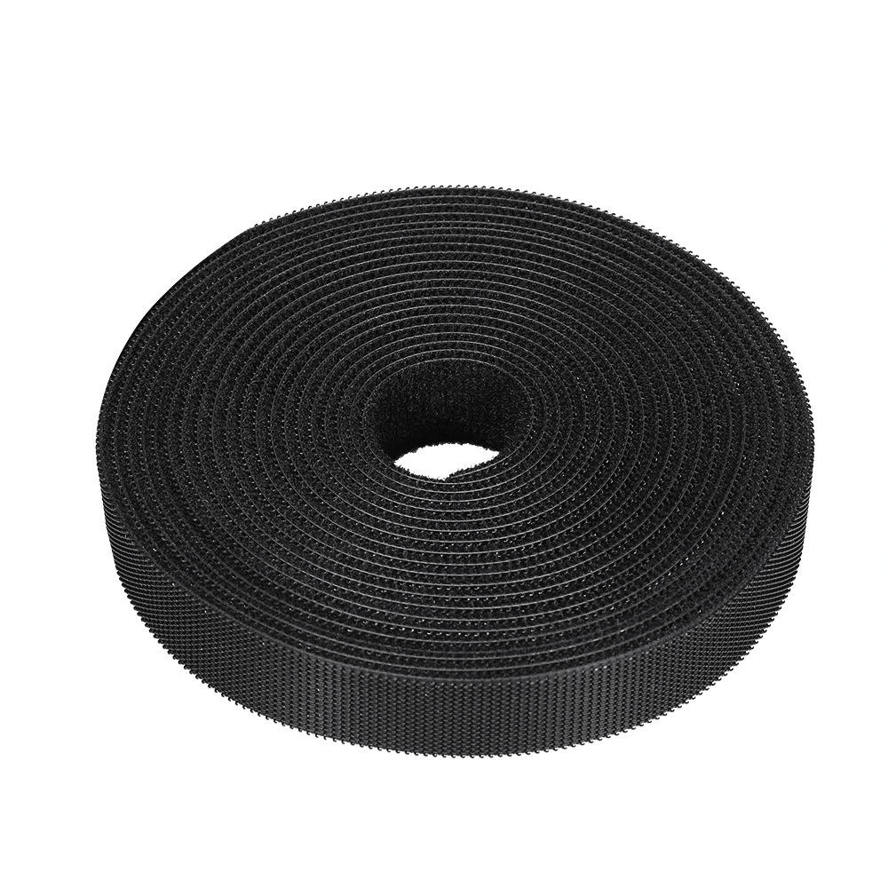 Klettband als beidseitiges Band (eine Seite Haken, andere Seite Velours), das die Organisation von Kabeln und mehr ermöglicht.