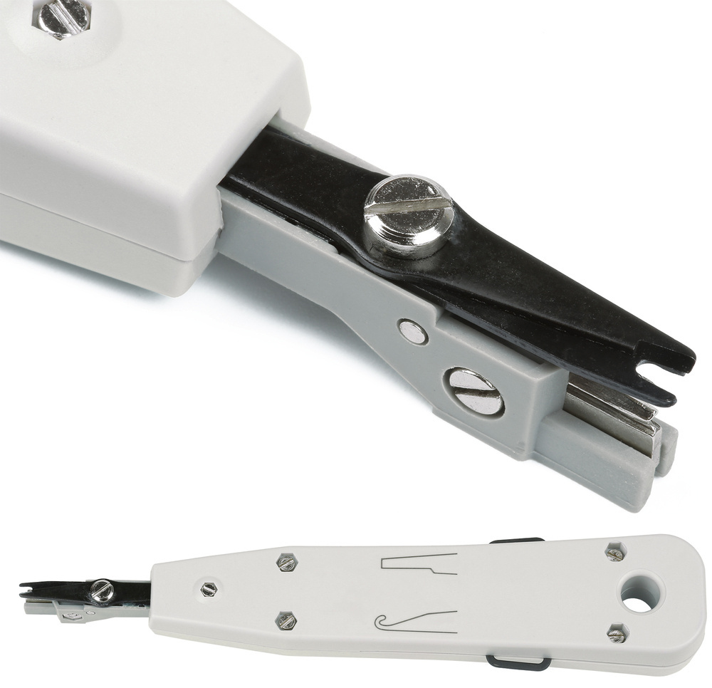 Ein einfaches, praktisches Werkzeug zum Entfernen der Außenisolierung von STP- und UTP-Kabeln sowie zum Pressen der Adern in 110-Terminals. Ideal zum Auflegen von Netzwerkkabeln in Dosen.
