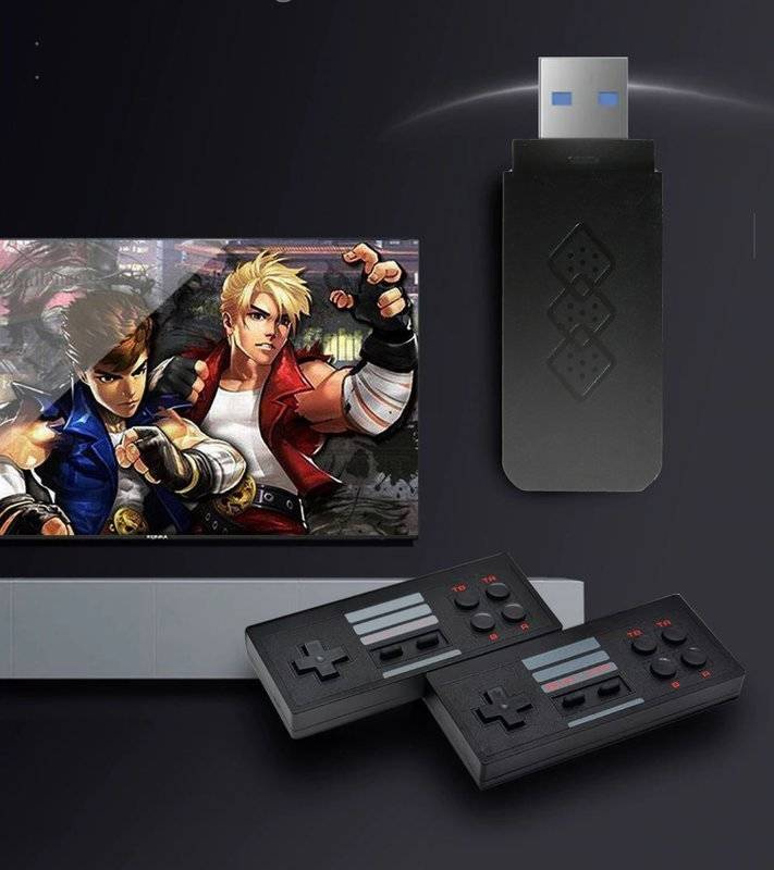 Die Konsole wird direkt über einen USB-Anschluss mit Strom versorgt (z. B. am Fernseher, Laptop, USB-Ladegerät usw.) und ist mit einem AV-Anschluss ausgestattet. Trotz ihrer kompakten Größe gibt sie das Bild in HD-Qualität mit 720p aus.