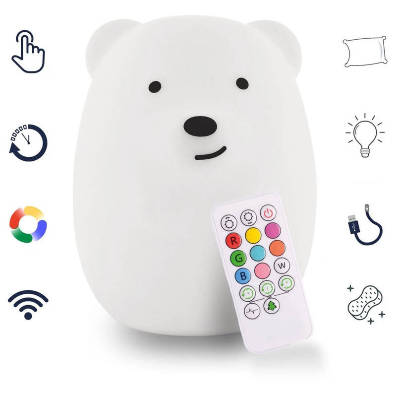 LED-Nachtlicht für Kinder | RGB, Silikon, Bär, mit IR-Fernbedienung | NL-04