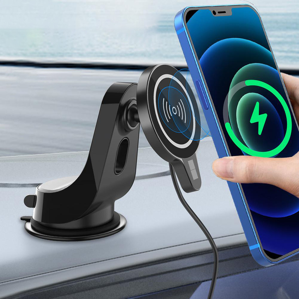 Magnetische Kfz-Halterung mit Induktionsladegerät | Qi, MagSafe, 15 W | für Windschutzscheibe oder Armaturenbrett | WH-10D