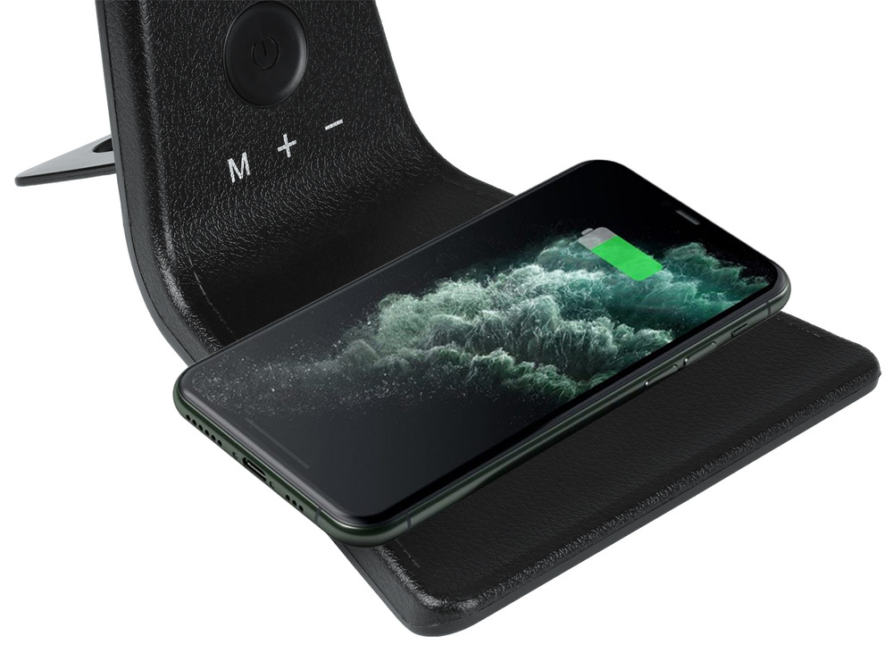 Die Lampe ist mit einem kabellosen Qi-Induktionsladegerät mit 10 W Leistung ausgestattet. So ist Ihr Telefon beim Laden immer griffbereit.