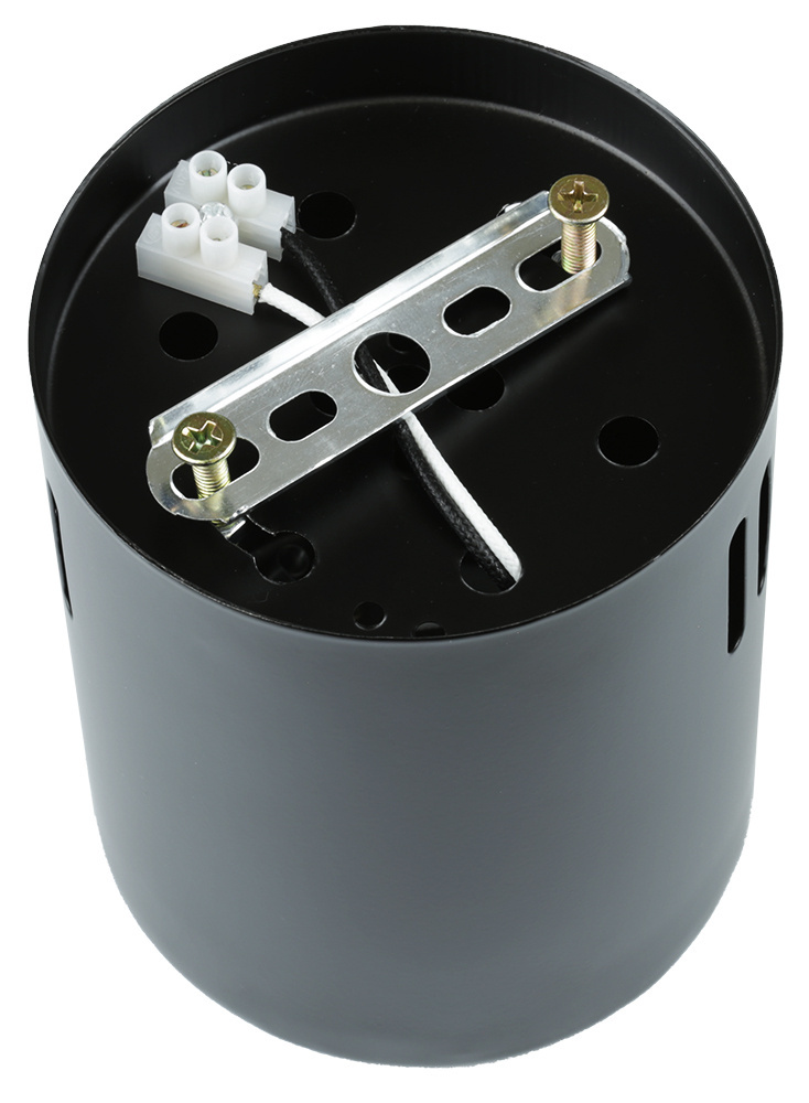 Die Leuchte ist mit einer Anschlussklemme sowie einer GU10-Anschlussfassung ausgestattet. Diese Komponenten sind so montiert, dass die Installation der Lampe vereinfacht und die Verbindung mit der Elektroinstallation erleichtert wird.