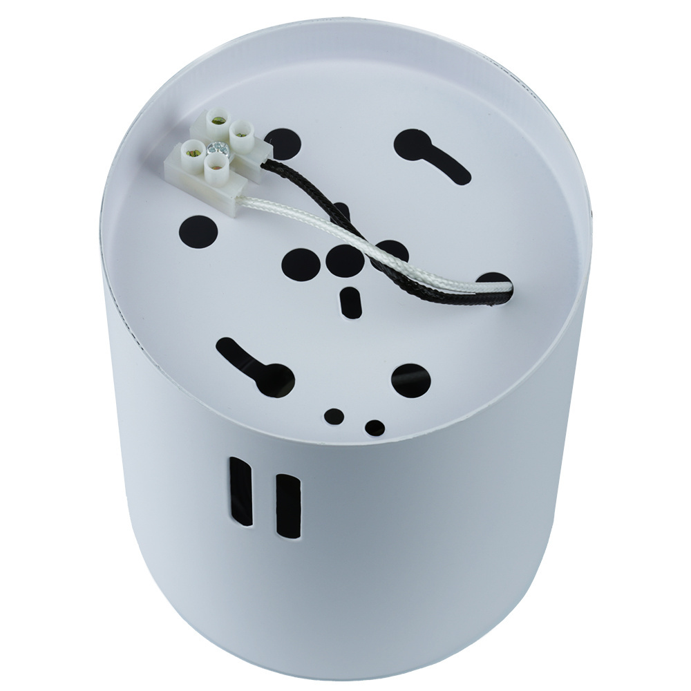 Die Leuchte ist mit einer Anschlussklemme und einer GU10-Anschlussfassung ausgestattet. Diese Komponenten sind so montiert, dass sie die Montagezeit der Lampe verkürzen und den Anschluss an das Stromnetz erleichtern.