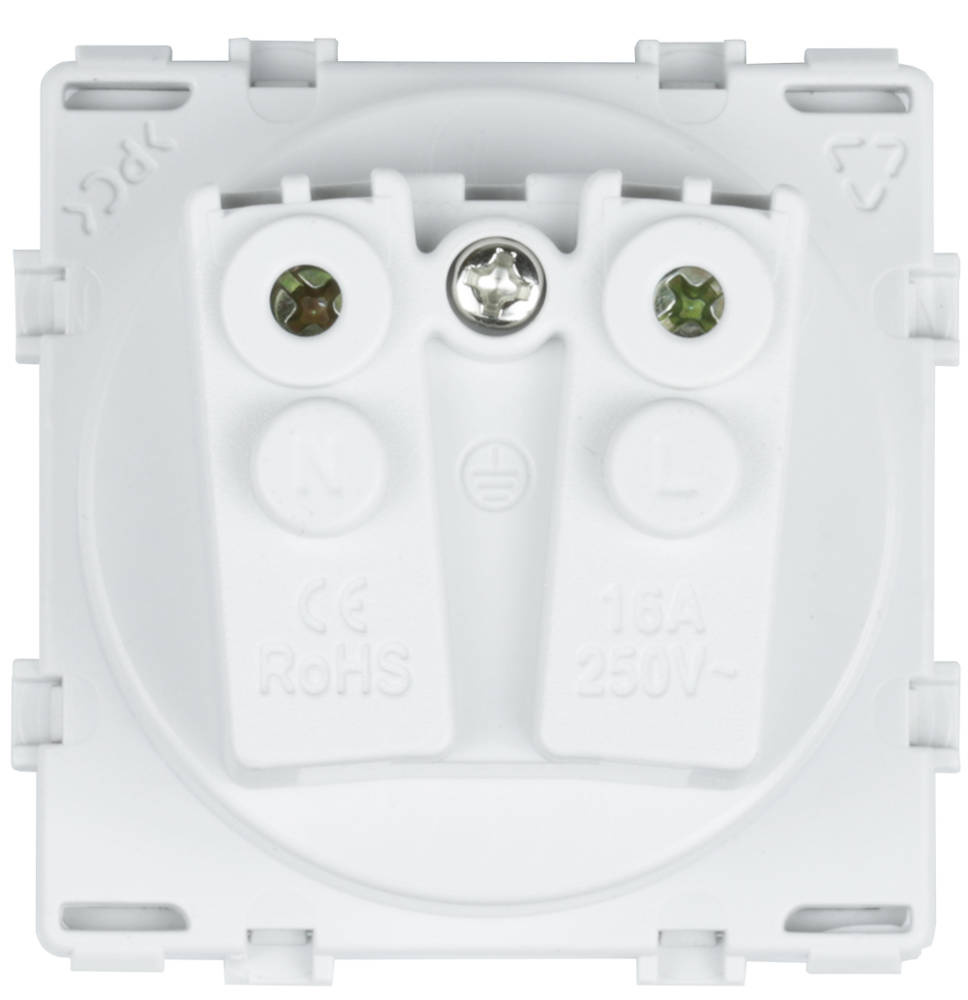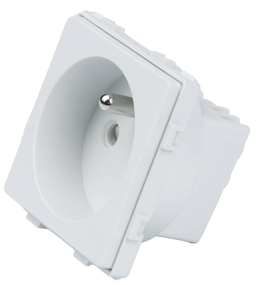 Die Steckdose besteht aus hochwertigem Kunststoff. Sie verfügt über einen Schutzkontakt und gesicherte Stromkreise, was zusätzlichen Schutz für Kinder bietet.