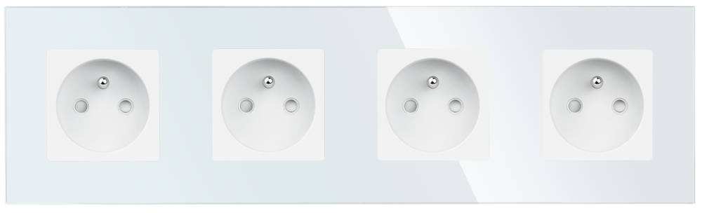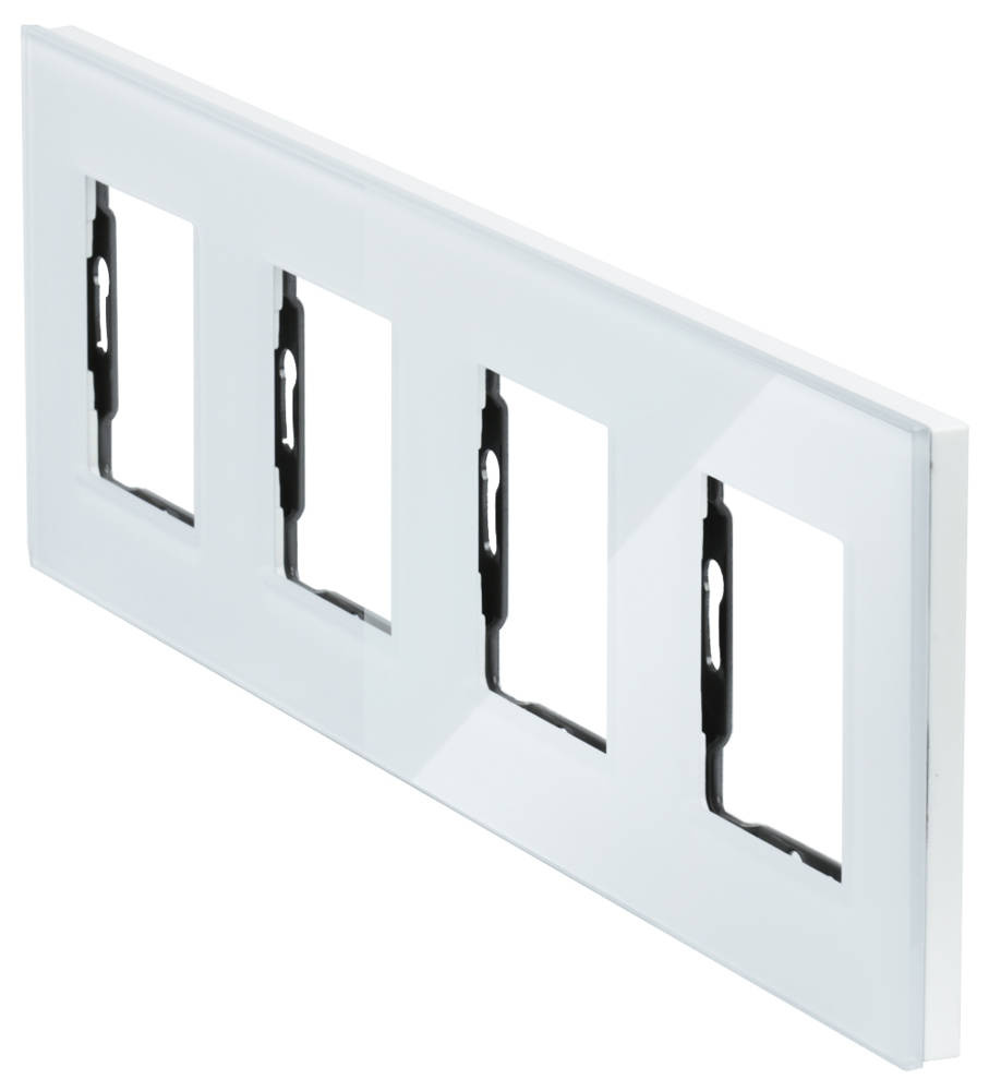 Vierfach-Rahmenset aus gehärtetem Glas + 4x Einzelsteckdose mit Schutzkontakt