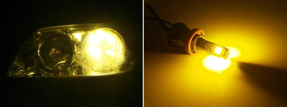 - Zwei LED H11 COB Glühbirnen mit zweifarbigen LEDs