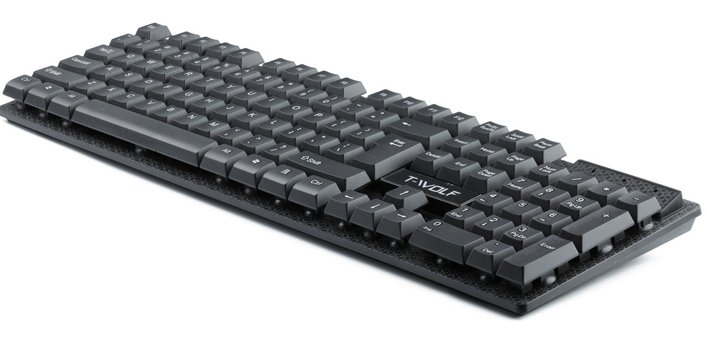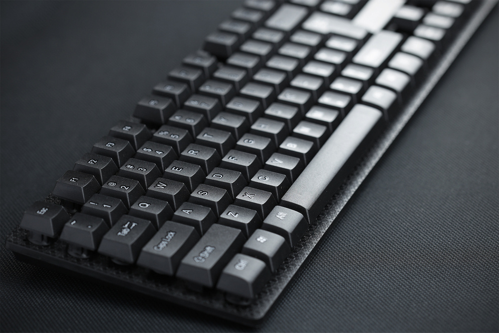 - Die Tastatur verfügt über ein klassisches, ergonomisches Tastenlayout mit hoher Enter-Taste, großem Shift und langer Leertaste. Die Tasten sind mit einer klaren, hochwertigen Beschriftung versehen.