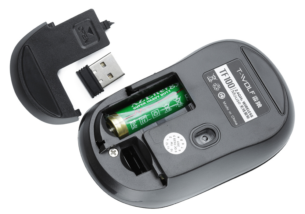 - Maus und Tastatur verbinden sich kabellos über den mitgelieferten Mini-USB-Empfänger, der praktisch im Mausgehäuse verstaut werden kann. Nach dem Anschluss an den Computer ist keine zusätzliche Treiberinstallation erforderlich (das Betriebssystem übernimmt dies automatisch).
