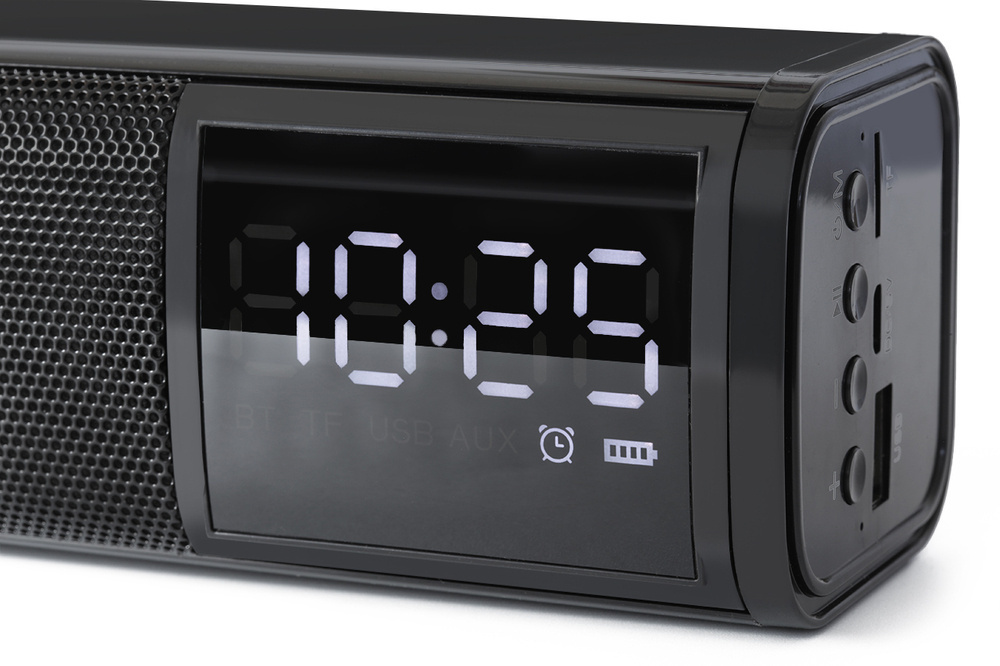 Kabellose Bluetooth-Soundbar für Computer | Uhr, Wecker, AUX, TF | 2.200 mAh, 10 W, 20 Hz–20 kHz | S8