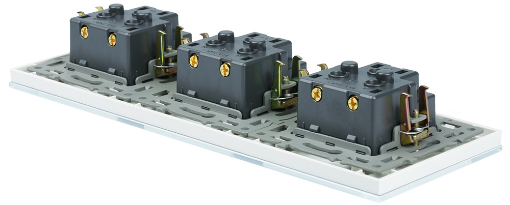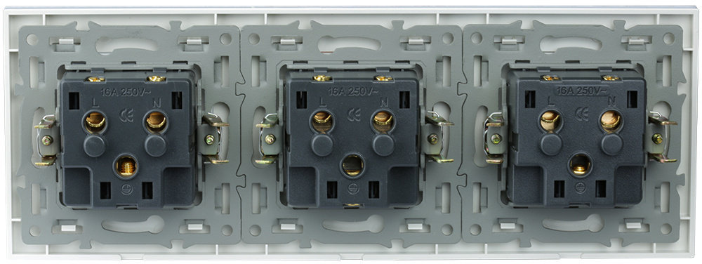 Der Hauptteil der Steckdose ist aus hochwertigem Kunststoff gefertigt. Der Steckdosenmechanismus ist in einem stabilen Metallrahmen eingebettet, der optimal an der Wand anliegt. Das System bildet eine Art Puzzle, das sich ideal mit weiteren Elementen einer Mehrfachkombination verbinden lässt und ein Auseinanderrutschen bei der Montage verhindert.