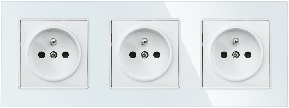 Dreifach-Steckdose mit Schutzkontakt und Rahmen | gehärtetes Glas | 230 V | F60-SC80-3 | weiß