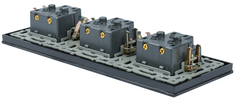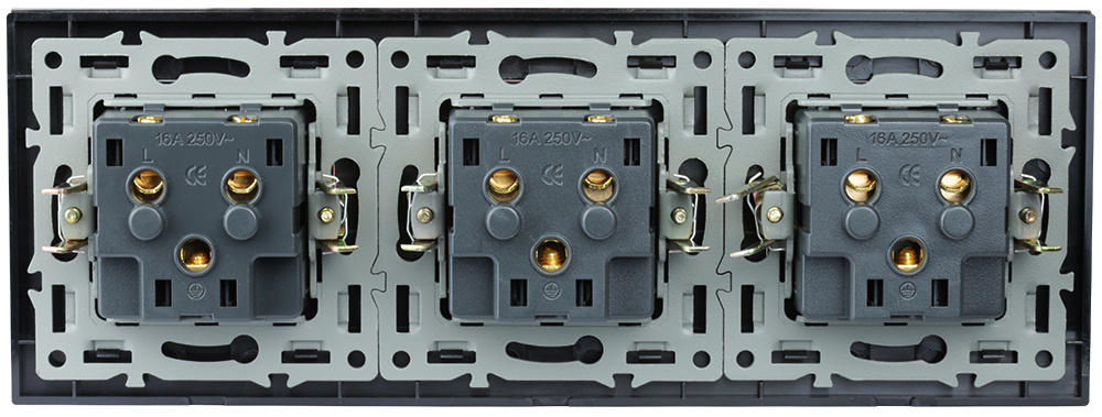 Das Hauptteil der Steckdose ist aus hochwertigem Kunststoff gefertigt. Der Mechanismus ist in einem stabilen Metallrahmen eingebettet, der optimal an der Wand anliegt. Er bildet eine Art Puzzle, das sich perfekt mit weiteren Elementen des Mehrfachsets verbinden lässt und ein Auseinanderrutschen bei der Montage verhindert.