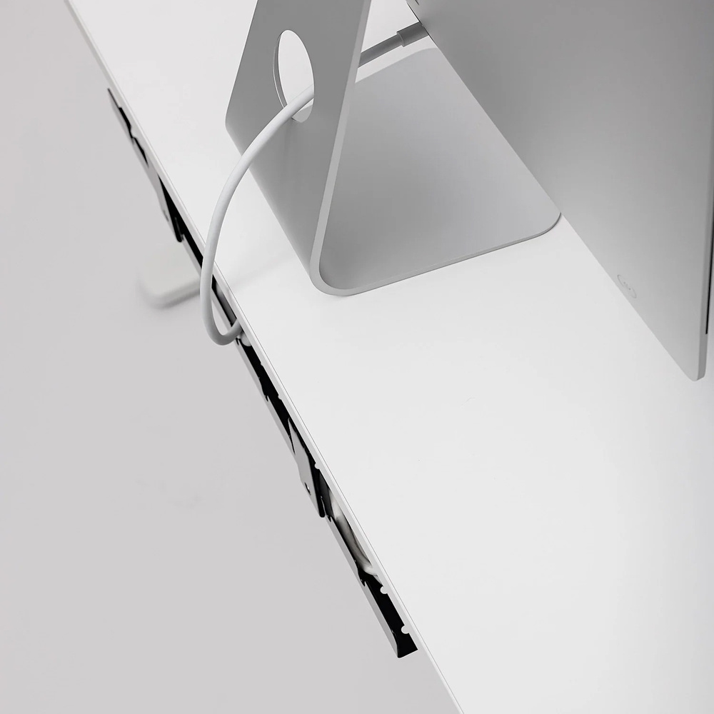 Der Kabelkanal unter der Tischplatte ist eine ausgezeichnete Lösung, um Kabel unter dem Schreibtisch zu organisieren, sowohl zu Hause als auch im Büro. Er ermöglicht eine ordentliche Anordnung von Leitungen, Mehrfachsteckdosen und Steckdosenleisten von Computergeräten.
