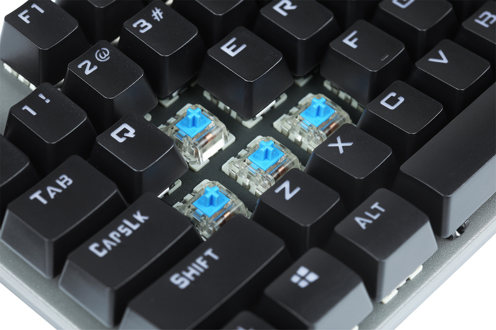 - Ausgestattet mit mechanischen blauen Switches, die ein spürbares Feedback und ein charakteristisches Klickgeräusch bieten – für außergewöhnliche Präzision im Spiel. Das sorgt für Sicherheit auch bei langen Sessions und ermöglicht ein intensives Spielerlebnis