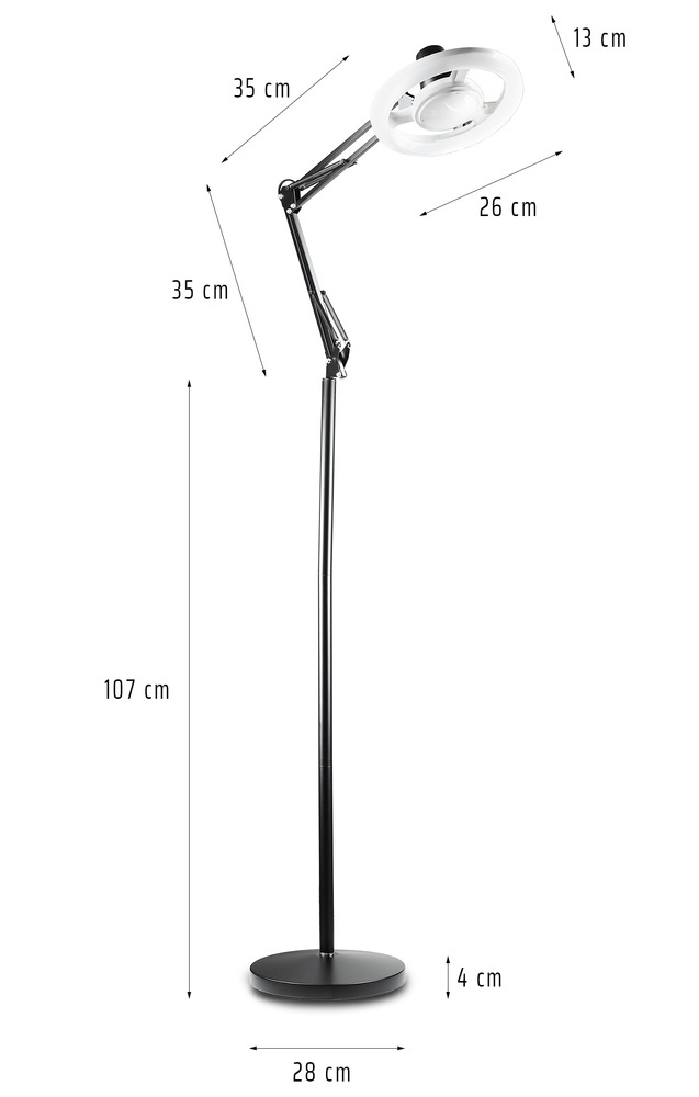 - Praktische und funktionale Stehleuchte mit breit einstellbarem Arm