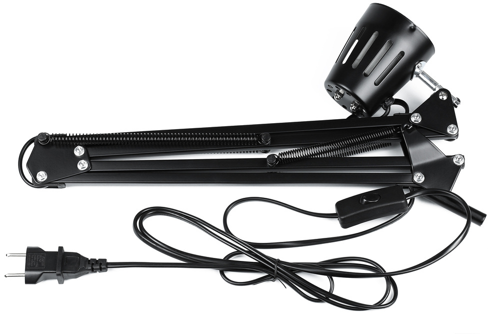 Mit dem beiliegenden Adapter lässt sich die Lampe (Arm mit Kopf) einfach an einem Tisch, Schreibtisch oder Schminktisch befestigen. So kann die Lampe auch platzsparend genutzt werden.