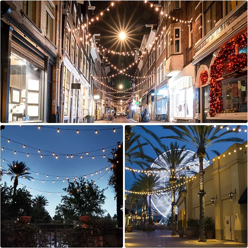 Einfache Montage besteht darin, ein Seil mit Glühbirnen aufzuhängen und einen Plattenspike in den Boden zu stecken - bereit!