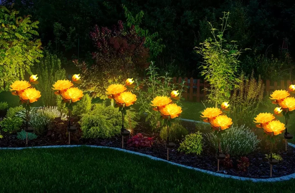 Die Blumenform und das Design der Lampe sind auffällig und ansprechend. Sie ziehen garantiert die Aufmerksamkeit von Gästen und Nachbarn auf sich, die das märchenhaft beleuchtete Gartenambiente bewundern werden.