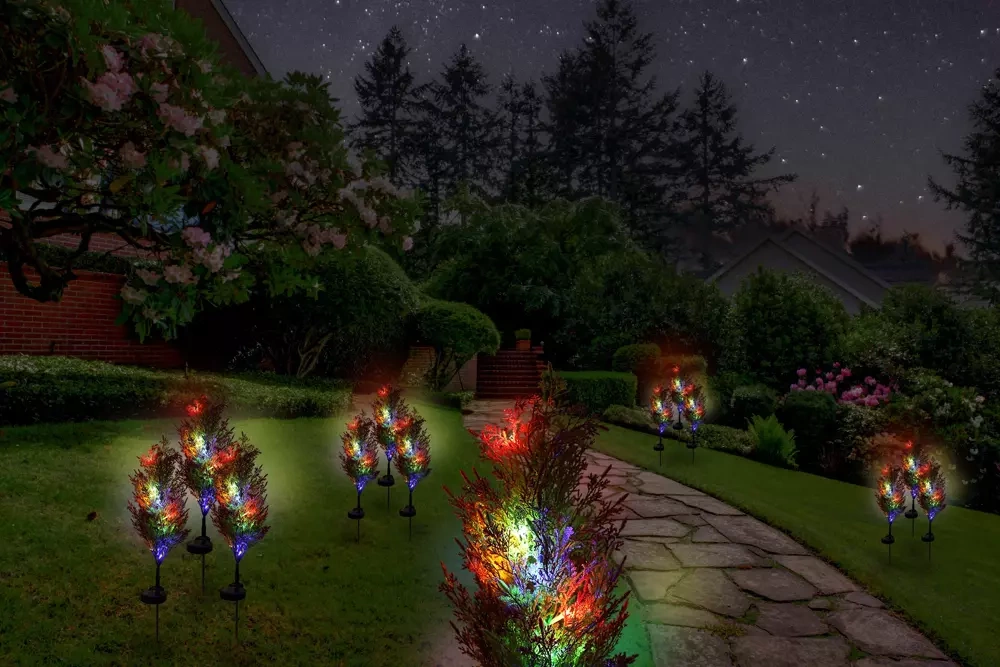 Die blumige Form und das Aussehen der Lampe sind auffällig und attraktiv. Sie werden sicherlich die Aufmerksamkeit von Gästen und Nachbarn auf sich ziehen, die die Schönheit eines märchenhaft beleuchteten Gartens bewundern werden.