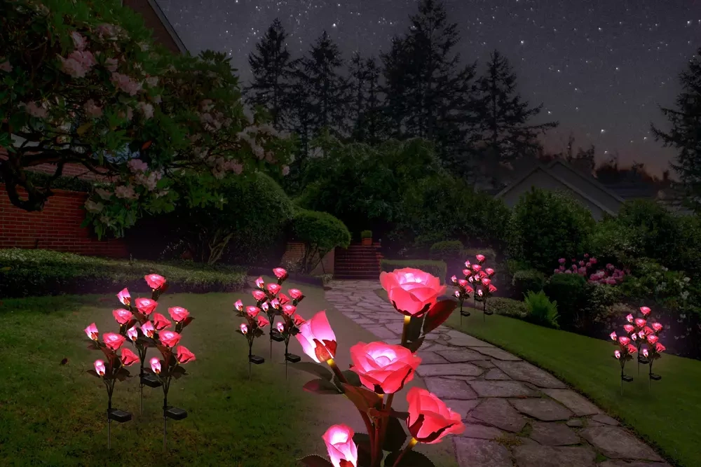 Die Blumenform und das Aussehen der Lampe sind beeindruckend und attraktiv. Sie werden sicherlich die Aufmerksamkeit von Gästen und Nachbarn auf sich ziehen, die die Schönheit des märchenhaft beleuchteten Gartens bewundern werden.