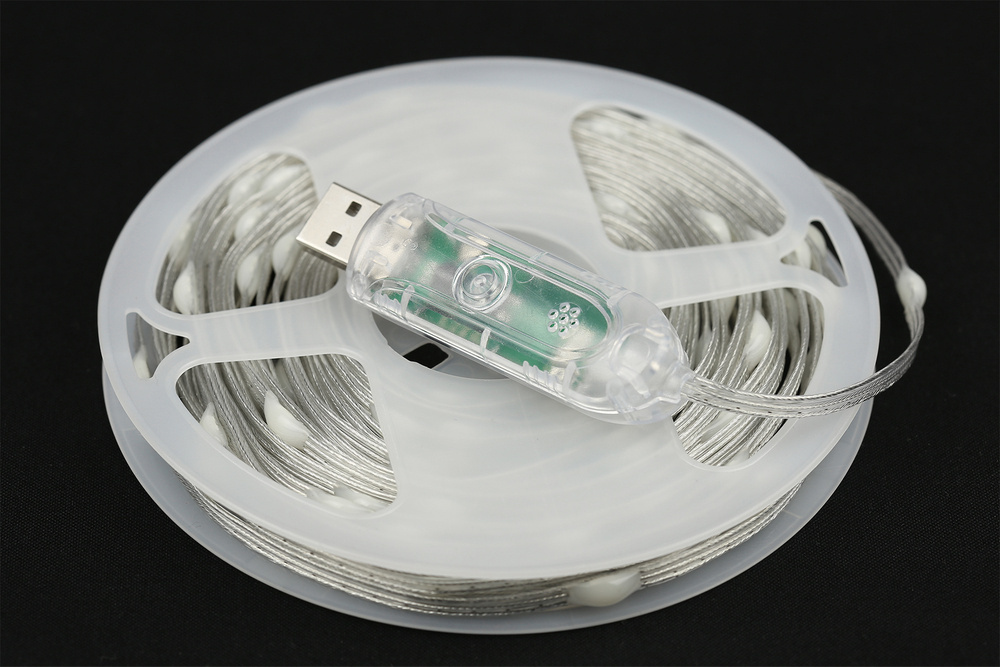 Das Band wird direkt über einen USB-Anschluss mit Strom versorgt, was eine hohe Vielseitigkeit bietet. Es kann an ein Netzladegerät, einen Computer, Monitor oder Fernseher angeschlossen werden.