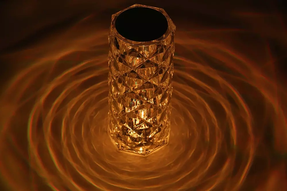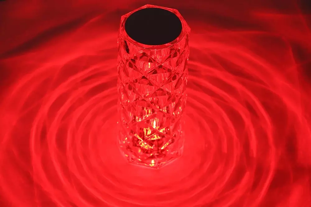 LED-Tischleuchte Kristalloptik | Rosenmuster, 16 RGB-Farben, Touchpanel, Fernbedienung, USB-C-Kabel, 2.000 mAh Akku | RPL-C16-RGB