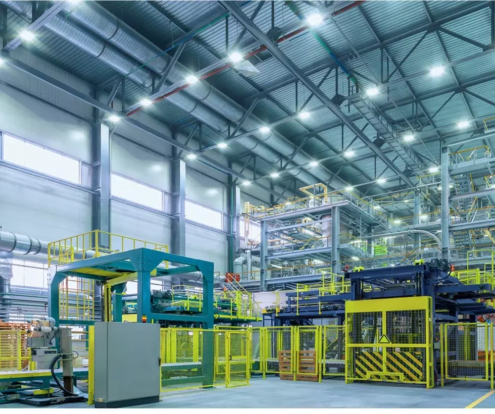 Energiesparende Lampe zur Beleuchtung von Industrieflächen. Ideal geeignet für: